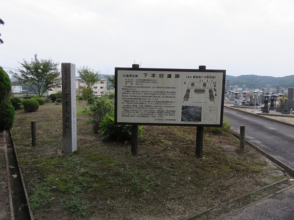 中国縦貫自動車道の三次インターチェンジを出ると、すぐに丘陵を切断して北方の市街地に通ずる道路にいたる。この丘陵を削った道路の場所が、下本谷遺跡の主要部分である。